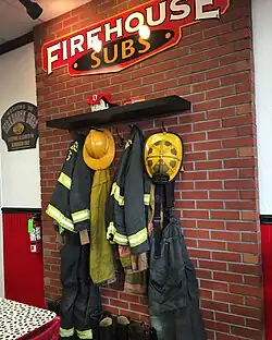 Die Innenausstattung dieser Restaurants ist von Feuerwachen inspiriert und beherbergt verschiedene Feuerwehrgerätschaften als Dekoration.