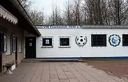 - Nach Angaben alteingesessener Fischenicher Bewohner war der jetzt als kleine Parkanlage mit Ehrenmal gestaltete Rosellenplatz der erste Sport- und Fußballplatz des Ortes. Der heutige Fußballplatz liegt am südwestlichen Orts- und Straßenende „Auf der Landau“, auf dem nach Ende des dortigen Braunkohletagebaus rekultivierten Gelände. Der von Stehplätzen umgebene Kunstrasenplatz verfügt über eine Flutlichtanlage.