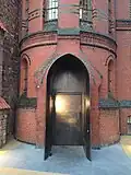 Ausstattung | Neubau Europäisches Hansemuseum Lübeck | Lübeck, Altstadt (Straße an der Untertrave) | Studio Andreas Heller GmbH. Architects & Designer | Das Museum eröffnete am 30. Mai 2015. - Der metallene Schriftzug, der metallverkleidete Durchgang zwischen Burgkloster und Beichthaus zum ehemaligen Gefängnishof sowie die neue bronzierte Eingangstür zum Burgkloster (siehe Bild) entstanden in Fittkaus Werkstatt.[43] | |