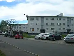 Flachdächer sind seither bei allen Gebäudetypen zu finden, von Einfamilienhäusern bis zu Wohnblocks, Plattenbauten und Hochhäusern, von Gewerbe- und Verwaltungsgebäuden bis zu Kirchen.[8] Beispielsweise waren Flachdach-Bungalows und -Wohnblocks prägende Elemente der westdeutschen Architektur der 1960er und 1970er Jahre.
