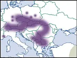 Das Verbreitungsgebiet erstreckt sich über Zentraleuropa, die Ostalpen und den Balkan bis nach Griechenland. In italienischen Westalpen gibt es zwei isolierte Vorkommen. In Deutschland gibt es isolierte Standorte im Schwarzwald, im Fränkischen Jura, im Bayerischen Wald, Thüringischen Wald und im Erzgebirge. In Österreich sind die Vorkommen ebenfalls sehr zerstreut. In den Karpaten ist die Art etwas häufiger.