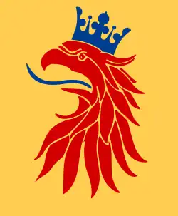 Offizielle Flagge Schonens ist eigentlich eine Flagge mit dem roten Kopf eines Greifs.[2]