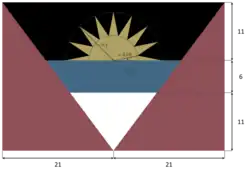 Die Sonne symbolisiert dabei den Anbruch einer neuen Ära. Die Farben haben unterschiedliche Bedeutungen: Schwarz steht für die afrikanischen Vorfahren der Einwohner von Antigua und Barbuda, Blau für Hoffnung und Rot für Kraft.