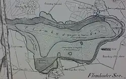Mit dem Aushub aus dem abgesenkten See und später aus dem Achterwehrer Schifffahrtskanal wurde der südwestliche Teil des Sees zugeschüttet. Diese Fläche dient heute noch bei Baggerarbeiten im Nord-Ostsee-Kanal als Spülfeld[4]. Der übrig gebliebene Teil des Flemhuder Sees umfasst rund 90 Hektar.