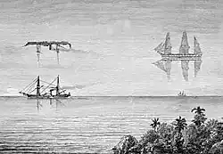 Am 6. April 1823 wurde vor der südafrikanischen Küste von HMS Leven unter Kommando von Kapitän W. F. Owen, auf der Reise von Algoa Bay nach Simons’s Bay, das Begleitschiff Barracouta in 2 Meilen Entfernung gesichtet und durch Eigenarten der Takelung eindeutig identifiziert. Man beobachtete, wie die Barracouta ein Boot zu Wasser ließ, kam aber nicht in ihre Nähe. Später stellte sich heraus, dass die Barracouta zu diesem Zeitpunkt 300 Meilen entfernt war und in jener Nacht kein Boot wasserte. Der anonyme Verfasser des Berichts führt weiter drei eigene Sichtungen von Phantomschiffen an, darunter eine ganz typische in einem Sturm.[6]