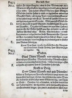Am Ende des Textbandes befinden sich drei alphabetische Register mit den im Werk aufgeführten lateinischen, dänischen und deutschen Pflanzennamen.