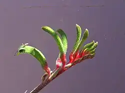 Ein weiterer Umweltfaktor, der ganz Australien (wieder mit Ausnahme der Regenwälder) prägt, ist das Feuer, ein integraler Bestandteil der australischen Umwelt. Am häufigsten treten Feuer nicht im ariden Inneren auf, sondern im relativ regenreichen Südosten, wo die Niederschläge allerdings recht unregelmäßig und Dürreperioden häufig sind. Hier kommen Brände etwa alle drei bis 10 Jahre vor, im Südwesten hingegen etwa alle 10 bis 20 Jahre, sowie im übrigen Land etwa alle 20 oder mehr Jahre.[3] Pro Jahr brennen zwischen vier und zehn Prozent der Landesfläche.[16] Es gibt zwei Grundstrategien der Pflanzen, Feuer zu überleben: Die Bildung großer Samenmengen, die entweder im Boden akkumulieren oder in verholzten Früchten gespeichert werden. Die Samen keimen nach einem Feuer beziehungsweise werden erst nach dem Feuer ausgestreut. Die andere Strategie ist, dass die Pflanzen feuerresistent sind (etwa durch dicke Borken) oder zumindest über Organe verfügen, die Feuer überstehen, zum Beispiel unterirdische Speicherorgane mit schlafenden Knospen. Weit verbreitet sind die Wurzelknollen (Lignotuber) vieler Eukalypten, die den Mallee prägen. Die in den Wurzelknollen gespeicherten Nährstoffe erlauben ein rasches Wiederaustreiben nach einem Brand. Einige Arten blühen erst direkt nach einem Feuer, etwa die Grasbäume, sodass die Samen relativ konkurrenzarm und durch die Asche mit Nährstoffen gut versorgt keimen können.[15]