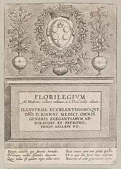 Florilegium ist ein um 1587/1589 veröffentlichtes Werk des niederländischen Kupferstechers Adriaen Collaert (um 1560–1618). Es ist eines der ersten Werke, das Blumenmotive als zentrales Thema hat, und zugleich die erste bekannte Verwendung des Wortes „Florilegium.“[1] Collaerts Werk beeinflusste spätere botanische Künstler, darunter Crispin de Passe und dessen Werk Hortus floridus (1615).