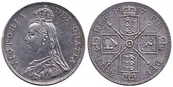 Der Doppel-Florin war eine Silbermünze mit einem Gewicht von 22,62 g[1], die 1887 erstmals ausgegeben wurde. Das sollte die „sanfte“ Einführung des Dezimalsystems unterstützen, fand jedoch keinen Anklang. Der fehlende Aufdruck des Münzwertes und die große Ähnlichkeit mit der seit langem etablierten Crown-Münze, die jedoch einen Shilling mehr an Wert darstellte, trug dem Doppel-Florin der Legende nach den Spitznamen Barmaid’s grief (engl., deutsch etwa: Kellnerinnen-Kummer) ein, weil die Unterscheidung beider Münzen bei schlechten Lichtverhältnissen, etwa in Gasthäusern, schwerfiel. Die Doppel-Florin-Münzen wurden um 1890 wieder eingezogen.
