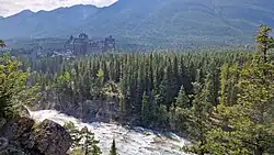 Oberhalb das Banff Springs Hotel und unterhalb der Bow River, in dem die Aufnahmen in den Stromschnellen gemacht wurden.