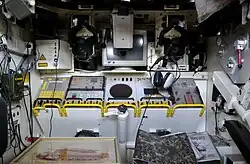 Der Großteil der Bedienelemente für die Turmbesatzung findet sich auf fünf Bedienpulten, wovon das mittlere Pult (Pult 3) hauptsächlich vom Bildschirm des Suchradars und Pult 4 beim Richtkanonier von den Anzeigen des Folgeradars eingenommen wird.