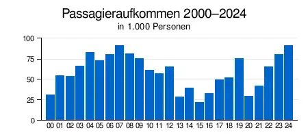 | Jahr | Fluggastaufkommen | Luftfracht (Tonnen) | Flugbewegungen |