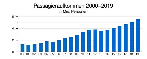 | Jahr | Fluggastaufkommen | Luftfracht (Tonnen) (mit Luftpost) |