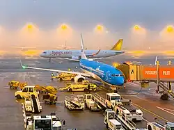 Der ebenso lange Nordpier (an Vorfeld A) verfügt über weniger Ausstattung als der Rest des Terminals und keine Fluggastbrücken, um den Anforderungen der dort platzierten Billigfluggesellschaften Rechnung zu tragen.[51] Das davor errichtete Terminal 2 ist für den Betrieb der Billigfluggesellschaften optimiert, mit automatisierter Gepäckaufgabe und vom Hauptterminal unabhängiger Gepäcksortierung.[52]