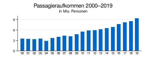 | Jahr | Fluggastaufkommen | Luftfracht (Tonnen) (mit Luftpost) |