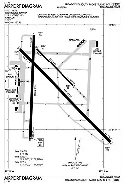- ↑ a b c d Brownsville South Padre Island Interna tional Airport (englisch) ( vom 12. März 2016 im Internet Archive) abgerufen am 1. April 2023