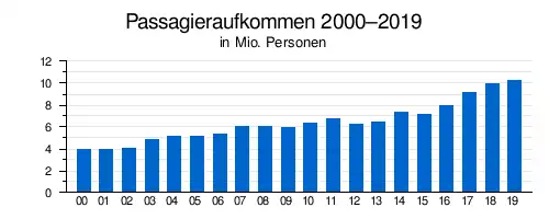 | Jahr | Fluggastaufkommen | Luftfracht (Tonnen) (mit Luftpost) |