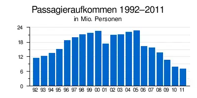 - ↑ Bei den Passagierzahlen der Jahre 1992 bis 2001 handelt es sich um die Verdoppelung der Zahl der abfliegenden Passagiere.