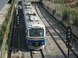 Die erste Linie der S-Bahn Izmir (İZBAN) hält am Flughafen. Sie fährt im 10- bis 15-Minuten-Takt in Richtung Tepeköy und entgegengesetzt über Gaziemir, Şirinyer und Halkapınar ins Stadtzentrum Alsancak und über Bayraklı, Karşıyaka, Çiğli, Menemen weiter nach Aliağa. An den Stationen Halkapınar und Hilal kann man zur Metro (Izmir Metro) umsteigen. Von vielen Bahnhöfen der Linie hat die Möglichkeit zu vielen anderen ESHOT Stadtbuslinien umsteigen. Die Fahrt ins Stadtzentrum Alsancak dauert 30 Minuten und ist günstiger als mit dem Busshuttle (Havaş). Bis nach Aliağa beträgt die Fahrtdauer 1 Stunde und 36 Minuten.