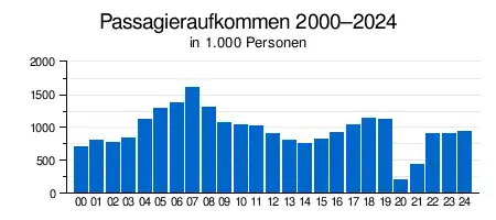 | Jahr | Fluggastaufkommen | Luftfracht (Tonnen) | Flugbewegungen |