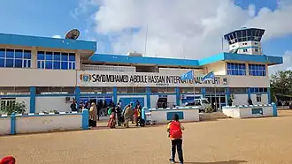 Der Flughafen wird auch Internationaler Flughafen Sayid Mohamed Abdule Hassan genannt. Dies bezieht sich auf den bedeutenden somalischen Poeten, Mohammed Abdullah Hassan, der ein Symbol für die nationale Einheit Somalias ist.