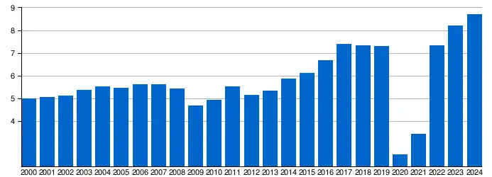 | 2003 | 5.383.426 | 47.667 | 7.492 |