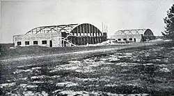 Erste Pläne zum Bau eines Flughafens können auf das Jahr 1934 datiert werden. Im Jahr 1935 wurde mit dem Bau des Flughafens auf einem 146 ha großen Areal begonnen. Zwei Jahre später wurden zwei zusätzliche Hangars, weitere Wirtschaftsgebäude sowie ein Kraftstofftank errichtet. Im Jahr 1938 wurde eine Pilotenschule gegründet. Die offizielle Eröffnung wird auf den 4. Juni 1939 datiert. Nach dreimonatiger militärischer Nutzung des Flughafens während des Zweiten Weltkriegs wurde der Flughafen von der deutschen Luftwaffe übernommen. Die Militärschule wurde indes von der deutschen Luftwaffe bombardiert.[7] Die Luftwaffe der Wehrmacht errichtete zwischen 1941 und 1944 eine Fliegerhorstkommandantur und betrieb ab 1942 die Fliegerwaffentechnische Schule 1 auf dem Platz. Beim Überfall auf die Sowjetunion im Sommer 1941 lag das Kampfgeschwader 54 mit seinen zweimotorigen Bombern vom Typ Junkers Ju 88A einige Wochen hier. Erst Anfang 1944 erfolgte eine erneute Belegung mit fliegenden Verbänden, als Teile der Kampfgeschwader 51 und 3 hier stationiert waren. Im Juli flogen noch Jagdflugzeuge vom Typ Messerschmitt Bf 109G und Focke-Wulf Fw 190A der Jagdgeschwader 51 und 54 von hier aus gegen die nahe Ostfront, bevor der Flugplatz am 24. Juli von Verbänden der sowjetischen 2. Panzerarmee erobert wurde.[8] Dabei wurde das Flughafenareal komplett zerstört.