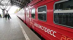 - Die schnellste Verbindung ist der Aeroexpress-Zug, der im 30-Minuten-Takt zum Bahnhof Domodedowo (nicht alle Züge halten hier), anschließend zum Bahnhof Werchnije Kotly mit Anschluss an den Moskauer Eisenbahnring und schließlich zum Pawelezer Bahnhof fährt. Die Fahrzeit beträgt 49 Minuten.[8] Die Aeroexpress-Züge verbinden die Moskauer Flughäfen mit Moskau und ermöglichen so auch Wechsel zwischen den Flughäfen.[9]