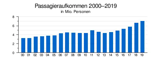 Flughafen Palermo-Punta Raisi – Verkehrszahlen 2000–2019[1]