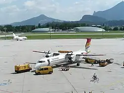 Der Flughafen Salzburg (IATA-Code: SZG, ICAO-Code: LOWS) liegt im Stadtgebiet von Salzburg und ist nach der Anzahl der Flugbewegungen der zweitgrößte Flughafen Österreichs. Der städtische Flugplatz Salzburg ging am 16. August 1926 in Betrieb. Ab 1945 wurde er unter amerikanischer Besatzung Salzburg Airport genannt.[4] Die Flughafenbetreiberin benutzt für den Flughafen auch die Eigenbezeichnung Salzburg Airport W.A. Mozart.[5]