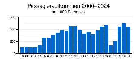 | Jahr | Fluggastaufkommen | Luftfracht (Tonnen) | Flugbewegungen |