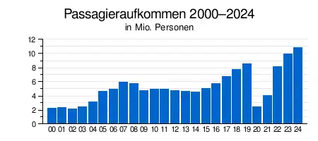 | Jahr | Fluggastaufkommen | Luftfracht (Tonnen) | Flugbewegungen |