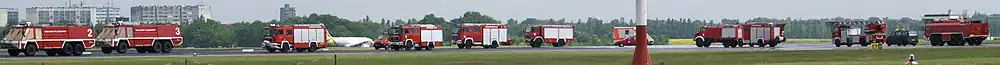 - Flugzeugbrandschutz – Jeder Flughafen erfüllt Flugzeugbrandschutz nach einer Kategorie der Richtlinien der internationalen Zivilluftfahrtorganisation ICAO.