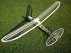 TAM 5 von Maynard Hill, 2003 Ein Transatlantikflugmodell[1] in klassischer Balsa- und Folienbauweise.