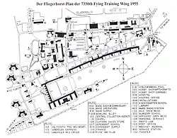 Nachdem im April 1945 rund 138 amerikanische B-17 „Flying Fortress“-Bomber der 1st Air Division (8th Air Force) ca. 335 Tonnen Bomben über dem Fliegerhorst abgeworfen hatten[7], welche die Startbahn, den Hangar und die Reparaturwerkstätten sowie weitere Einrichtungen vernichtete, besetzten Soldaten der 7. US-Armee den Fliegerhorst. Von der Besatzungsmacht wurde er zunächst als Airfield R.72 bezeichnet. Die USAAF (seit 1947: USAF) übernahm das Gelände und nutzte es als Militärflugplatz. Während der Berlinkrise verlegte im Sommer 1948 kurzzeitig die mit Langstreckenbombern vom Typ B-29 ausgerüstete 301st Bombardment Group nach Fürstenfeldbruck. Das mit Lockheed P-80 ausgerüstete 36th Fighter Wing der USAF war hier seit 1948 stationiert. 1950 wurde auf Republic F-84 umgerüstet und die Einheit zur 36th Fighter Bomber Wing, die bis 1952 blieb. In den Jahren 1952/53 diente Fürstenfeldbruck als Ausweichplatz für RF-80, deren Heimatbasis bei Toul sich noch im Ausbau befand. Ab dem 5. April 1954 übernahm die 7330th Training Group unter Commander Col. Mark H. Vinzant, Jr. die nach internen Umgruppierungen ab Oktober 1954 zur Ausbildungsstaffel (squadron) unter der Bezeichnung 7330th Flying Training Wing wurde.[8] Die ersten Auszubildenden des "Major Defense Acquisition Programs" (MDAP-students) begannen mit dem Trainingsprogramm bereits im Frühjahr 1954. Mehr als 500 Schüler aus Spanien, der Türkei, aus Holland, Belgien, Dänemark, Griechenland, Italien, Norwegen, Pakistan, Portugal, Großbritannien und dem Iran haben die Kurse absolviert. Das Schulprogramm bestand aus: "instrument training", "jet transition training", einem "jet instructor"- Kurs, und einem "senior staff officer" - Kurs. Alle Auszubildenden waren bereits lizenzierte Piloten in ihren Heimatländern.[9]