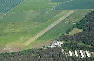 Der 1941 als Fliegerhorst der Luftwaffe der Wehrmacht eröffnete Flugplatz beherbergte anfangs einmotorige Schulflugzeuge des Fliegerausbildungsregiments 11, die spätere Flugzeugführerschule A/B 11. Von Dezember 1944 bis März 1945 war hier mit der Nahaufklärungsstaffel 11 auch eine reguläre Einheit stationiert.[1]