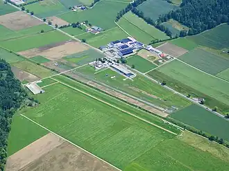 Der Flugplatz liegt etwa 2 km südöstlich von Beromünster und etwa 17 km nordwestlich von Luzern.[1] Das Flugplatzgelände liegt auf dem Gebiet der politischen Gemeinde Beromünster. Naturräumlich liegt der Flugplatz im oberen Bereich des Wynentals. Die Wyna fliesst unmittelbar westlich des Platzes in nördlicher Richtung.