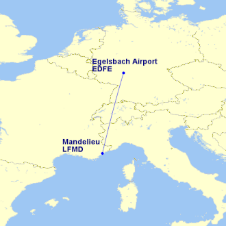 ![]() Flugstrecke des Unfallfluges, der Unfall ereignete sich nahe dem Flugplatz Egelsbach (EDFE) | |