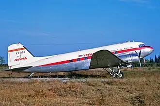 Die betroffene Maschine war eine 1943 gebaute Douglas C-47A-75-DL (DC-3) mit der Werknummer 19332, die 1943 im Werk der Douglas Aircraft Company in Long Beach, Kalifornien gebaut und mit dem militärischen Luftfahrzeugkennzeichen 42-100869 an die United States Army Air Forces (USAAF) ausgeliefert wurde. Nach dem Krieg wurde die C-47 als Überbestand der USAAF kategorisiert und ausgeflottet. Die Maschine wurde nach Spanien verkauft und zu einer zivilen DC-3 umgebaut. Das Flugzeug ging dann im Dezember 1947 mit dem Luftfahrzeugkennzeichen EC-DAV in Betrieb. Am 20. Oktober 1947 ging die Maschine dann an die Iberia, die sie als EC-ACH zuließ. Die DC-3 wurde von zwei Doppelsternmotoren Pratt & Whitney R-1830-92 Twin Wasp mit je 1.200 PS Leistung angetrieben.