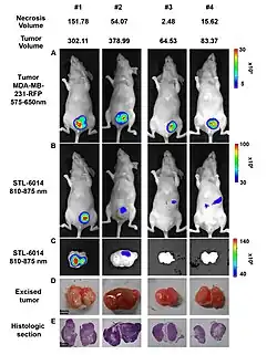 - ↑ N. Kosaka u. a.: Clinical implications of near-infrared fluorescence imaging in cancer. In: Future Oncol 5, 2009, S. 1501–1511. PMID 19903075 (Review)