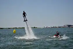 Als Flyboard wurde ursprünglich ein durch den Rückstoß eines Wasserstrahls angetriebenes Wassersportgerät bezeichnet, das dem darauf stehenden Benutzer gefesselte Schwebeflüge bis zu 9 Metern über der Wasseroberfläche ermöglichte. Die Antriebsenergie des Flyboards in Form von Druckwasser wurde ihm dabei über einen Schlauch zugeleitet, der mit der Impellerpumpe eines Jet-Skis verbunden war, dessen Wasserstrahlantrieb auf diese Weise die notwendige Druckwassermenge erzeugte.[1] Die Bezeichnung Flyboard ist eine eingetragene Marke der Firma ZIPAIR.