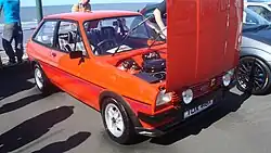 Der Fiesta wurde ab dem 11. Mai 1976 als fünfsitzige Limousine mit drei Türen und Schrägheck oder als Kleinlieferwagen gebaut.[2] Die verschiedenen Varianten waren mit 1,0-, 1,1-, 1,3- und 1,6-Liter-Ottomotoren und Vierganggetriebe erhältlich. Die angetriebenen Vorderräder des Fiesta waren einzeln an MacPherson-Federbeinen und Querlenkern aufgehängt, die starre Hinterachse führten zwei Längslenker, ein Panhardstab und die Stoßdämpfer, die das Bremsreaktionsmoment aufnahmen. Als Vorläufer des späteren XR2 mit 1,6 Litern und 62 kW, gilt der Fiesta Super S mit wahlweise 1,1- oder 1,3-Liter-Motor. Er nahm auch das Design der Seitenstreifen vorweg (Baujahre 1980 bis 1981). Aus der Motorsportabteilung gab es überdies noch im gleichen Zeitraum den Fiesta X mit 1,1-Liter-Motor und 51,5 kW, die Basis war der Fiesta Ghia. Der Fiesta X hatte die spätere Karosseriezeichnung des XR2, nur ohne Seitendekor.