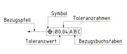 - ↑ Ø-Zeichen vor dem Toleranzwert (siehe Toleranzrahmen (Bild))