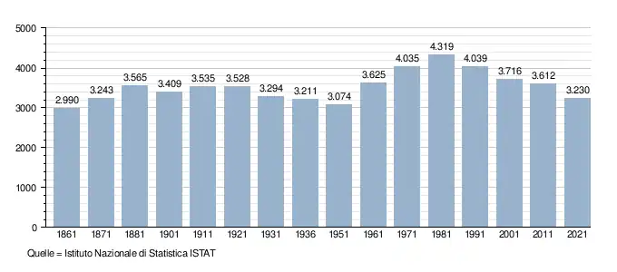 - ↑ Bilancio demografico e popolazione residente per sesso al 31 dicembre 2024. ISTAT. (Bevölkerungsstatistiken des Istituto Nazionale di Statistica, Stand 31. Dezember 2024).