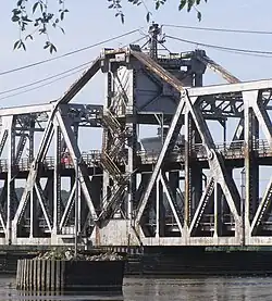 | Konstruktion | Fachwerkbrücke mit Drehbrücke | |