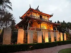 Vor dem Hauptgebäude befinden sich neun Steinstelen, die auf dem Rücken steinerner Schildkröten ruhen. Ihre in chinesischer und mandschurischer Sprache verfassten Inschriften erinnern an die Niederschlagung eines Aufstandes durch die Qing-Regierung im Jahr 1786. Die Stelen standen ursprünglich in der Nähe des südlichen Stadttores und wurden im Jahr 1960 auf das Gelände des Forts Provintia überführt.