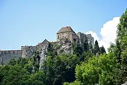 ![]() Château de Joux von La Cluse-et-Mijoux aus gesehen | ||