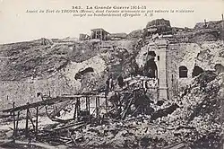 Fort de Troyon, Granateinschlag auf dem Wall. -