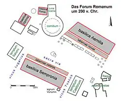 Die Basilica Aemilia ist eine der ursprünglich vier Basiliken aus der römischen Republik. Sie trug nach ihren beiden Erbauern erst den Namen Basilica Aemilia et Fulvia, da sich aber nur die Aemilier an Restaurierungen in den folgenden Jahrhunderten beteiligten, wurde sie kurz Basilica Aemilia genannt. Nach mehreren Restaurierungen wurde sie nach der Zerstörung 410 durch Alarich I. ein letztes Mal neu aufgebaut.
