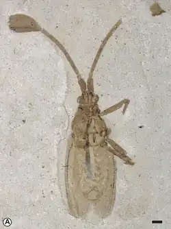 - ↑ Torsten Wappler, Eric Guilbert, Conrad C. Labandeira, Thomas Hörnschemeyer, Sonja Wedmann: Morphological and Behavioral Convergence in Extinct and Extant Bugs: The Systematics and Biology of a New Unusual Fossil Lace Bug from the Eocene. PLoS ONE 10(8), 2015, S. e0133330 doi:10.1371/journal.pone.0133330.